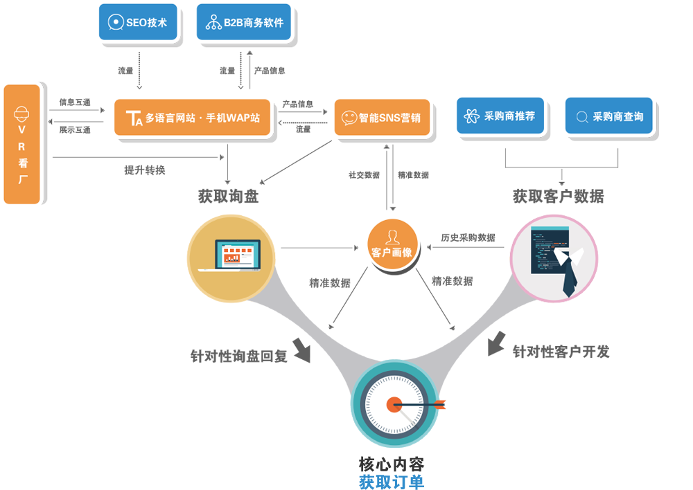 基于全球SNS大數據的一站式社交營銷,助力外貿企業智能挖掘客戶數據、智能互動,并智能達成轉化。包含跨平臺多賬戶管理體系、智能社交營銷體系、智能監控體系。